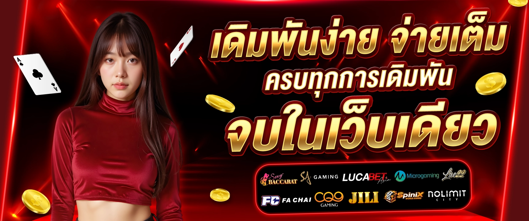 ให้คุณเพลิดเพลินกับเกมพนันหลากหลายรูปแบบ ทั้งคาสิโนสด สล็อต บาคาร่า แทงบอล มวย หวย และอื่นๆ อีกมากมาย พร้อมโปรโมชั่นสุดคุ้มที่มอบให้สมาชิกทุกระดับ